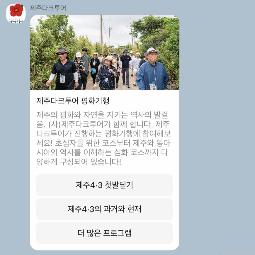 '제주다크투어 평화기행'을 누르시면 제주4.3 평화기행 코스를 자세히 알아보실 수 있어요