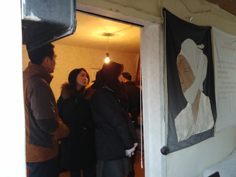 백조일손지지에서 참배를 마친 후 4·3 후유장애인으로 평생을 살아오신 진아영할머니 삶터를 방문했습니다. 진아영 할머니는 4.3 당시 한경면 판포리에서 경찰이 쏜 총탄에 맞아 턱을 잃었습니다. 항상 턱에 무명천을 두르고 다녀 ‘무명천 할머니’라고도 불렸습니다.